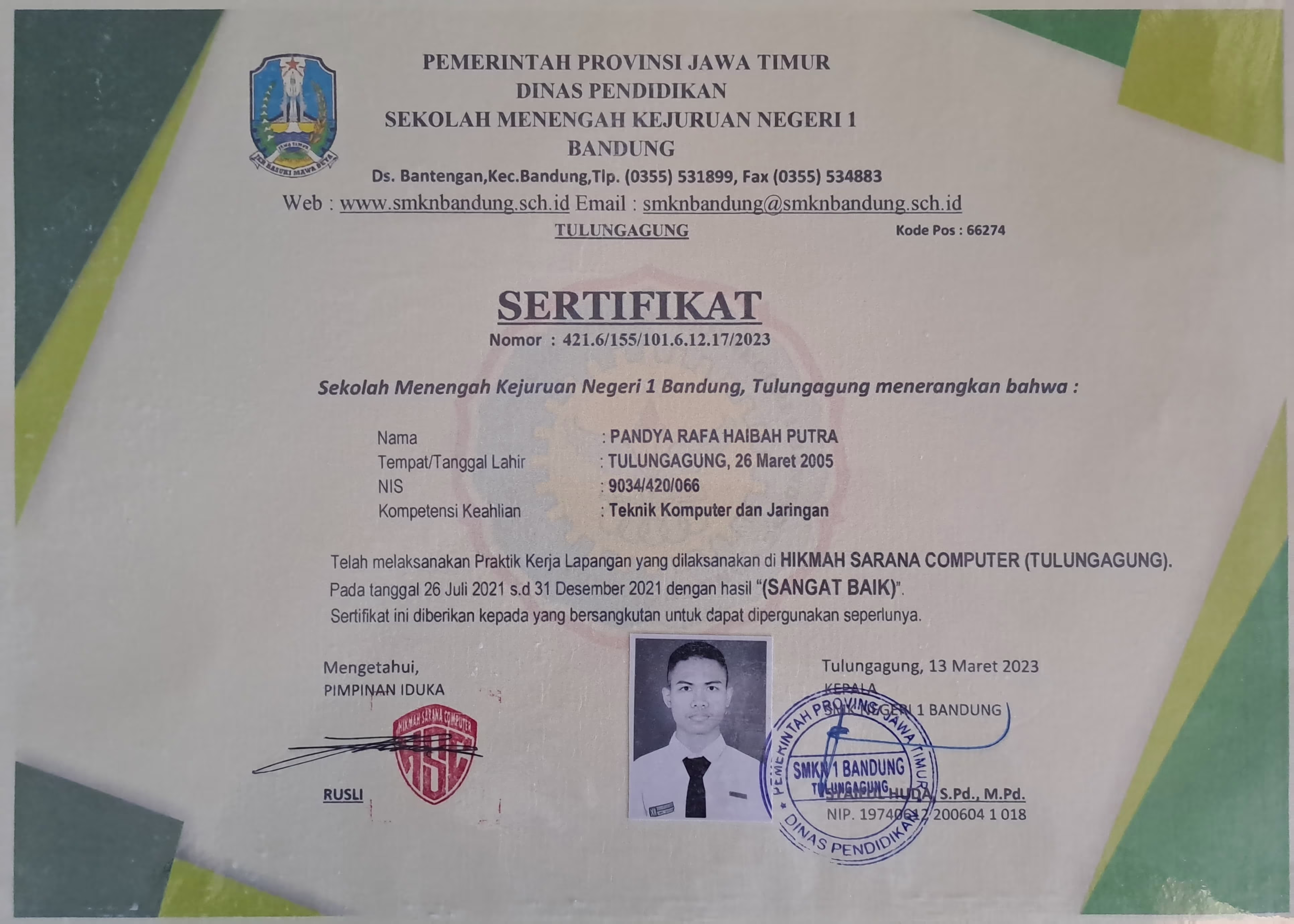 Namaku Pandya Rafa Haibah Rafa 😎, umurku tahun, dan aku mahasiswa Manajemen Informatika di Polinema! 🤩 Aku sangat tertarik dengan web development dan senang belajar teknologi baru setiap hari. 🥳
